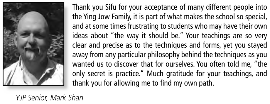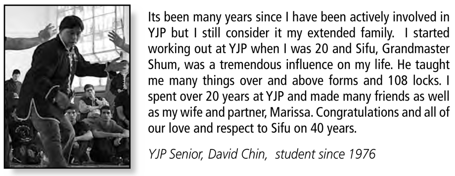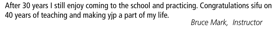 Eagle Claw is such a unique and beautiful style...that, in and of itself makes YJP special. The other main thing that sets YJP apart from other schools is that we truly are a family. I love all my Kung Fu brothers and sisters and I know that they all care about me. That is such a great feeling to have when you walk through the door to train.